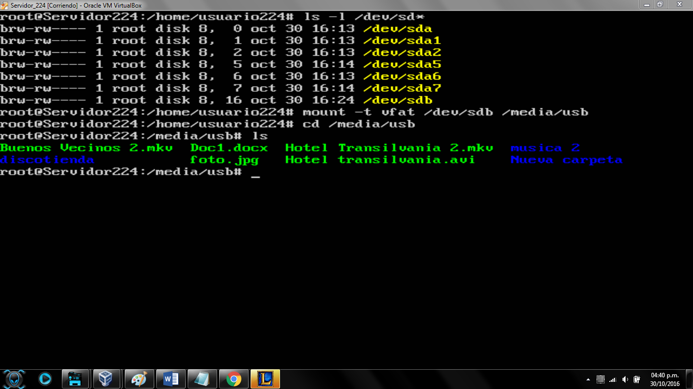 se observa en la imagen que al montar la usb se muestra todos los archivos contenidos solo se debe ir la la ruta /medi/usb